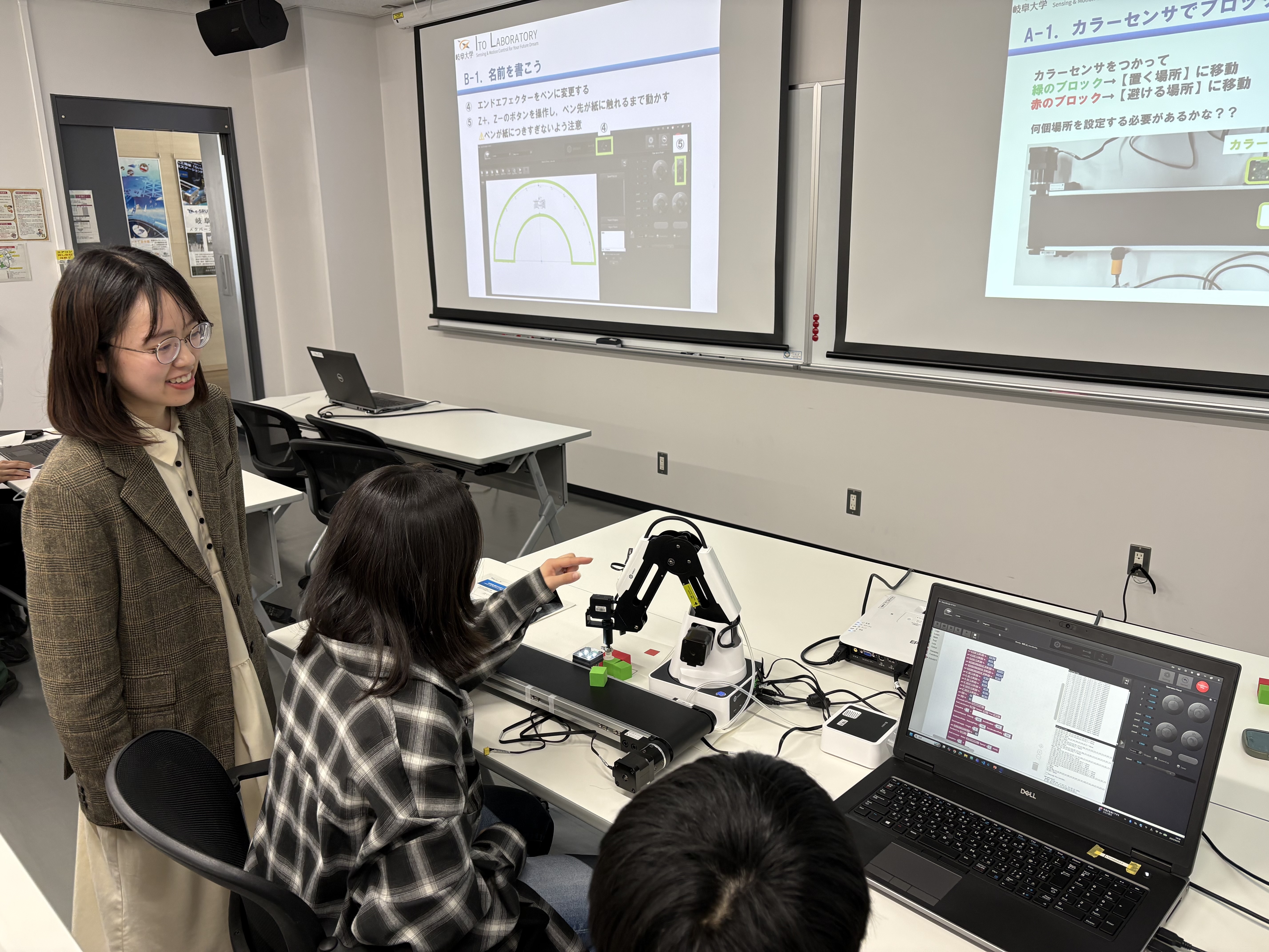 2026年4月3日(金)、「中学生向けロボット講座 初級編~ロボットをプログラムして動かしてみよう~」(主催:東海国立大学機構 航空宇宙生産技術開発センター、共催:岐阜大学工学部電気電子・情報工学科情報コース、男女共同参画推進室)が開催されました。